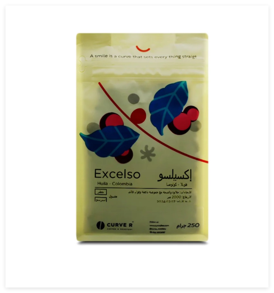 إكسيلسو هويلا كولومبيا | محمصة كيرف | 250 جرام Colombia Huila Excelso | Curve Roastery | 250g