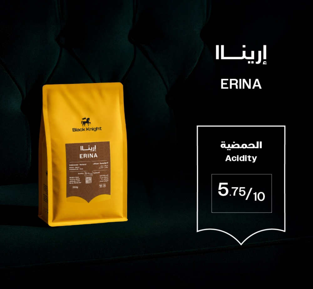 Erina – Indonesia | Black Knight Roastery قهوة ارينا – اندونيسيا | محمصة الفارس الأسود | مجففة بإيحاء فاكهي | تاريخ التحميص 24/11/2025